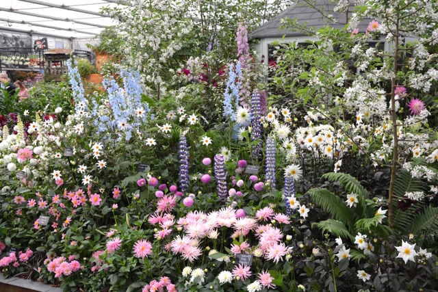 Posée parmi les boules de buis, une boule illuminée de l'intérieur dès que les rayons du soleil y pénètrent.