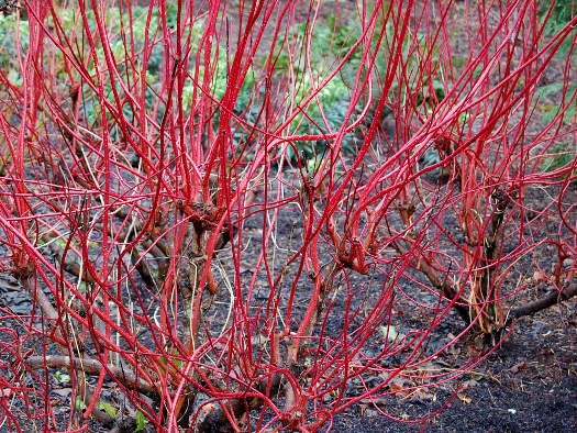 Impossible de parler des écorces colorées sans évoquer les cornouillers (Cornus). Dans ce genre botanique très vaste, il existe de nombreuses espèces dont les jeunes rameaux prennent de superbes couleurs vives. Spectacle garanti en hiver !