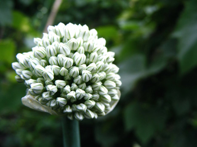 Le poireau, autre Alliacée, donne lui aussi des fleurs bien typiques de cette famille.