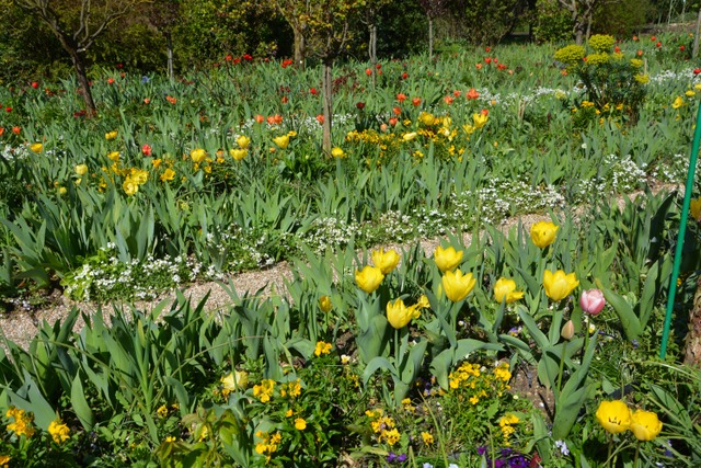 Le cerisier, en fleurs mi-avril, participe lui aussi à ce ballet fleuri.