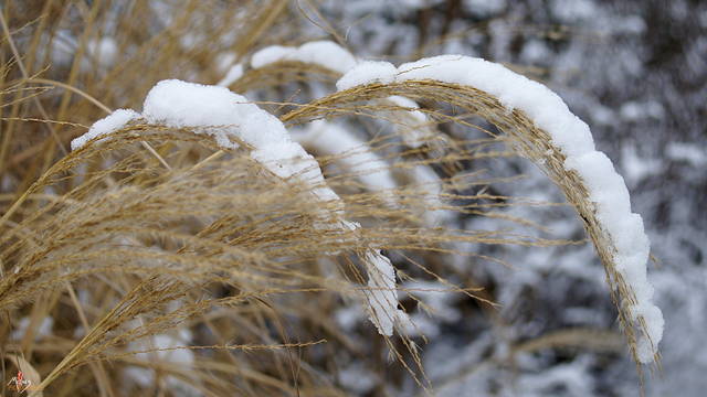 Sous la neige, la couleur tombée du ciel... dans un étang.