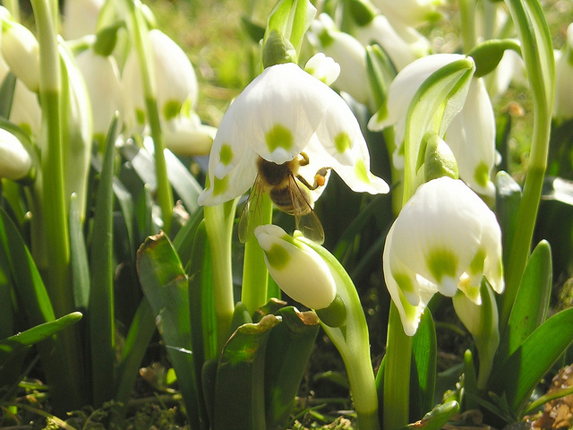Le perce-neige (Galanthus) est sans doute la fleur à bulbe la plus précoce au printemps : les petits clochettes blanches s'épanouissent en fin d'hiver, même sous la neige.