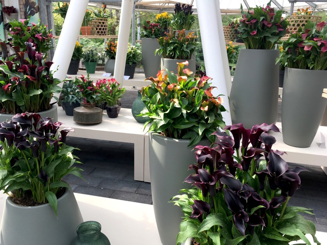 Au Keukenhof, des pavillons abrités proposent aussi des compositions végétales. Ici, place au rose !