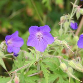 Je teste de nouvelles variétés comme le Geranium Rozanne® par exemple, qui fleurit sans discontinuer de juin aux premières gelées, contrairement à Johnson's Blue. C'est un couvre-sol des plus vigoureux. Ses fleurs ont un joli bleu et une taille respectable pour une plante si petite.