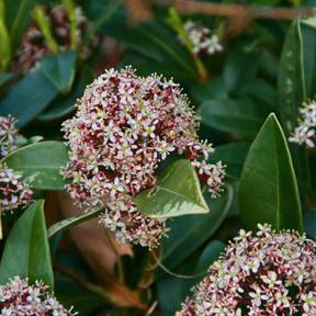 En juin-juillet, de petites fleurs aux étamines saillantes d’un rose profond et satiné et disposées en corymbes de belle taille éclosent à l’extrémité des tiges. Cette extraordinaire floraison vaporeuse à la teinte soutenue se prolonge pendant plusieurs semaines et résiste aussi bien au soleil qu’à la pluie.