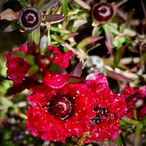 Il est vrai qu'il est difficile de trouver des essences pourpres persistantes. Malgré tout, plusieurs espèces produisent de jeunes pousses colorées pour les débuts de saison : le Photinia fraseri 'Carré Rouge', indispensable dans les haies libres ou taillées, ou le bambou sacré (Nandina domestica), un brin frileux mais dont on apprécie les panicules de petites fleurs bijoux et la longue fructification. Pour les sols acides, on opte sans hésiter pour le Leucothoe fontanesiana 'Scarletta', dont les feuilles redeviennent rouge-bronze en hiver.