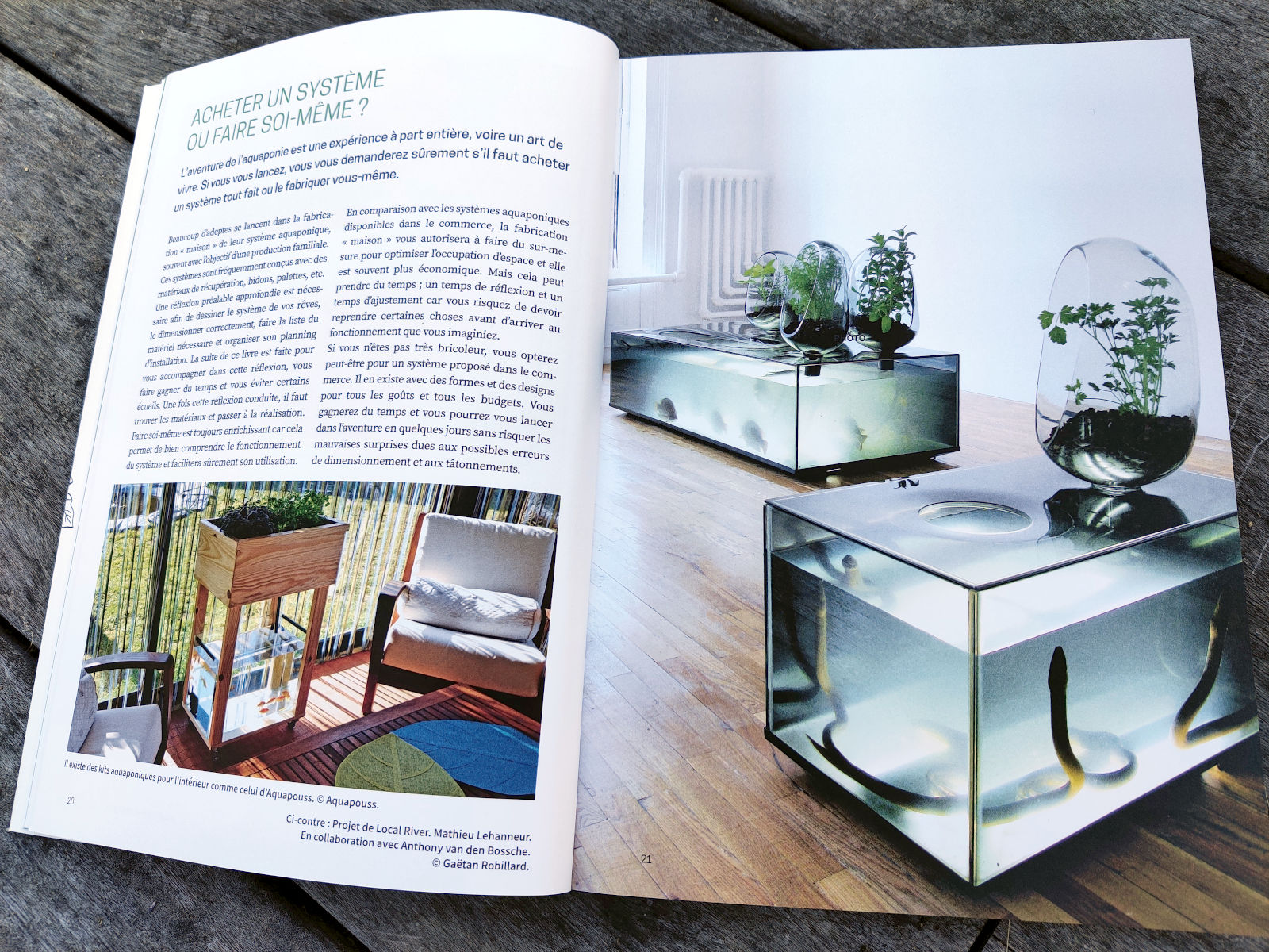 L’aquaponie, vous connaissez ? En plein essor, cette technique consiste à créer des écosystèmes « en circuit fermé » tenant à la fois de l’aquarium et du potager hors-sol. On élève des poissons dans un bac. Leurs déjections enrichissent l’eau en nutriments utiles à la croissance des plantes, lesquelles assurent la filtration... La boucle est bouclée !