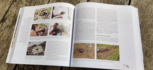 Ce volume dense s’appuie sur l’expérience de sa mère, « Marie-Thé », partie s’installer à l’aube des années 90, dans La Baie au Saguenay–Lac-Saint-Jean, une contrée du Québec située en zone boréale. Les presque 400 pages paraissent vouloir transmettre, dans toute leur richesse, ces 30 ans de vie réellement écologique, avec des options qui sembleront peut-être extrêmes, mais atteste puissamment la possibilité d’une autre existence, plus saine et tout aussi belle. Côté jardin, cela passe par une sérieuse planification annuelle, bien décrite dans l’ouvrage, et par la découverte, à mi-parcours, du non-travail du sol, avec des bénéfices concrets, bien valorisés ici. Sur 3000m2, potager et verger assurent à l’année une bonne part des besoins alimentaires de 5 personnes. Un résultat spectaculaire, surtout en zone USDA 3b (soit -30°C l’hiver, plus rude que nos climats montagneux!).