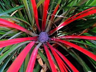 Les Broméliacées forment une famille de plantes originaires majoritairement des régions tropicales d'Amérique. Parmi plus de 1700 espèces, beaucoup sont épiphytes comme les Tillandsia (qui vivent pendues aux branches des arbres de la forêt tropicale) et d'autres terrestres comme l'Ananas dont on déguste le fruit...