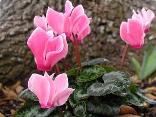 Cyclamen de Naples, Cyclamen coum... les cyclamens rustiques sont plantés dans les jardins pour former de superbes tapis de fleurs, en automne ou e...
